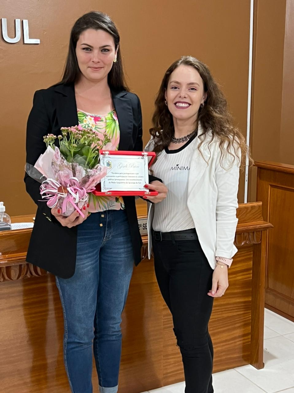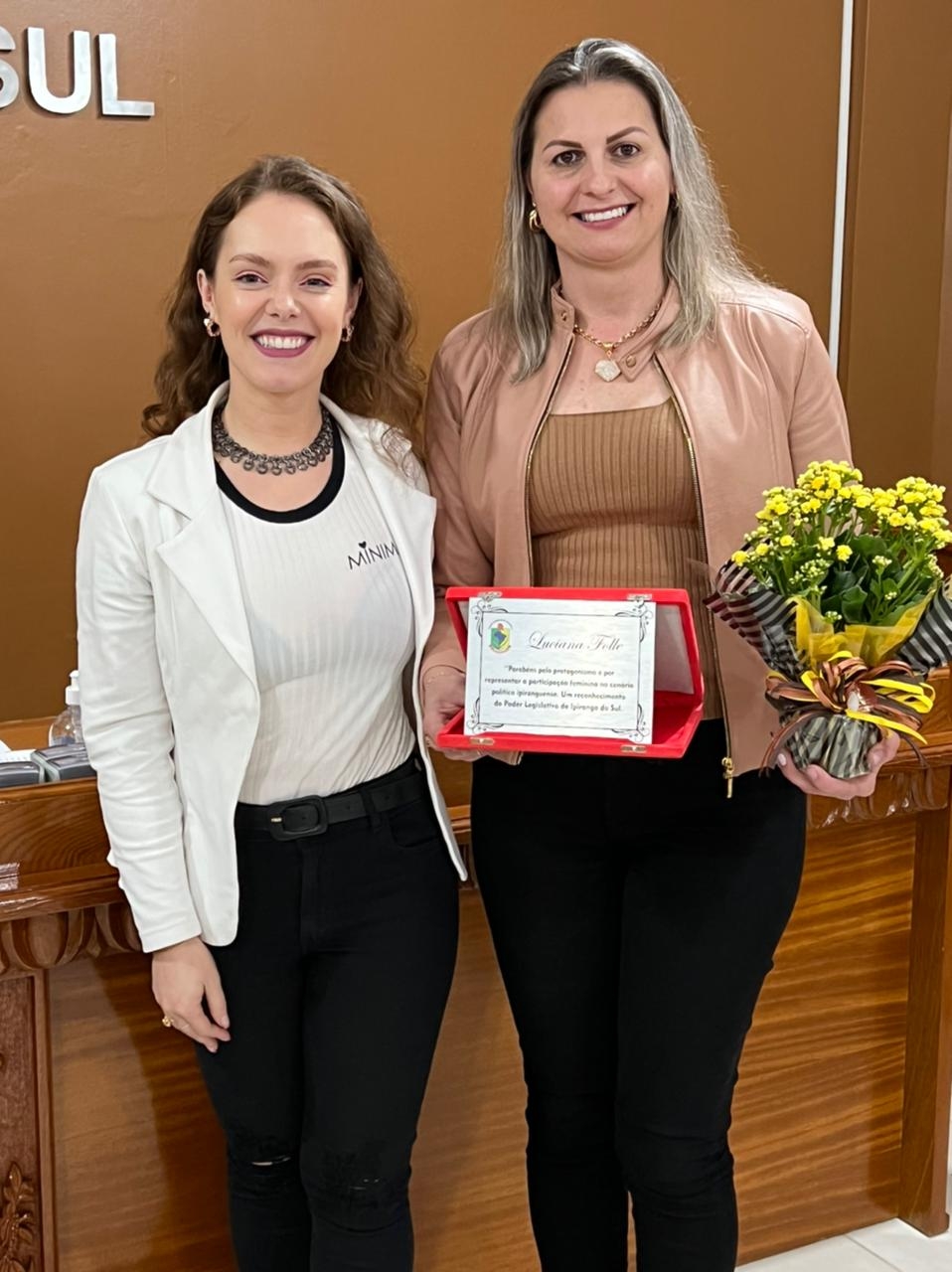 O mesmo gesto foi estendido para as atuais vereadoras, Luciana Folle e Giseli Paim, e para a suplente de vereadora, Rute Salles Schmidt.