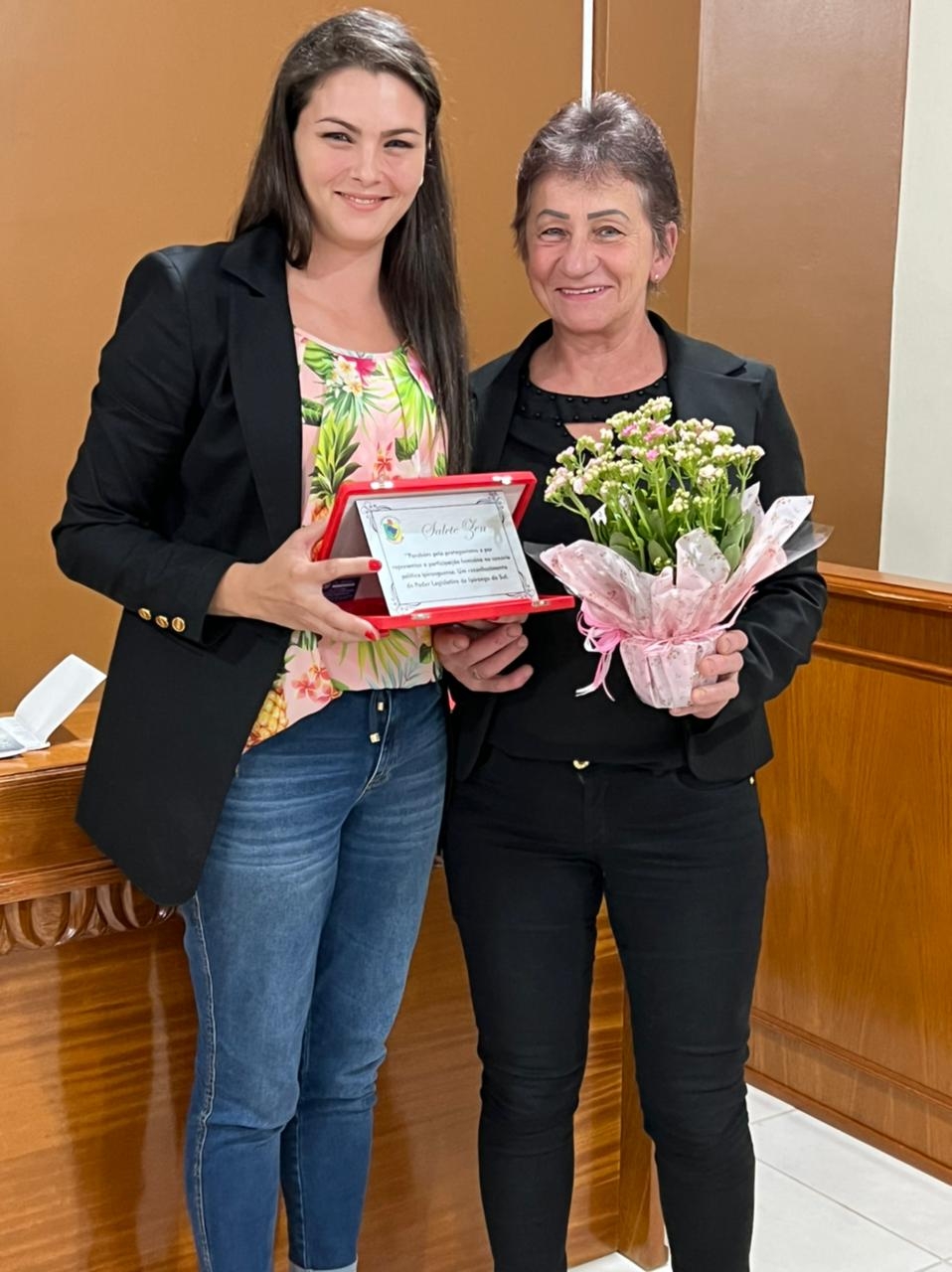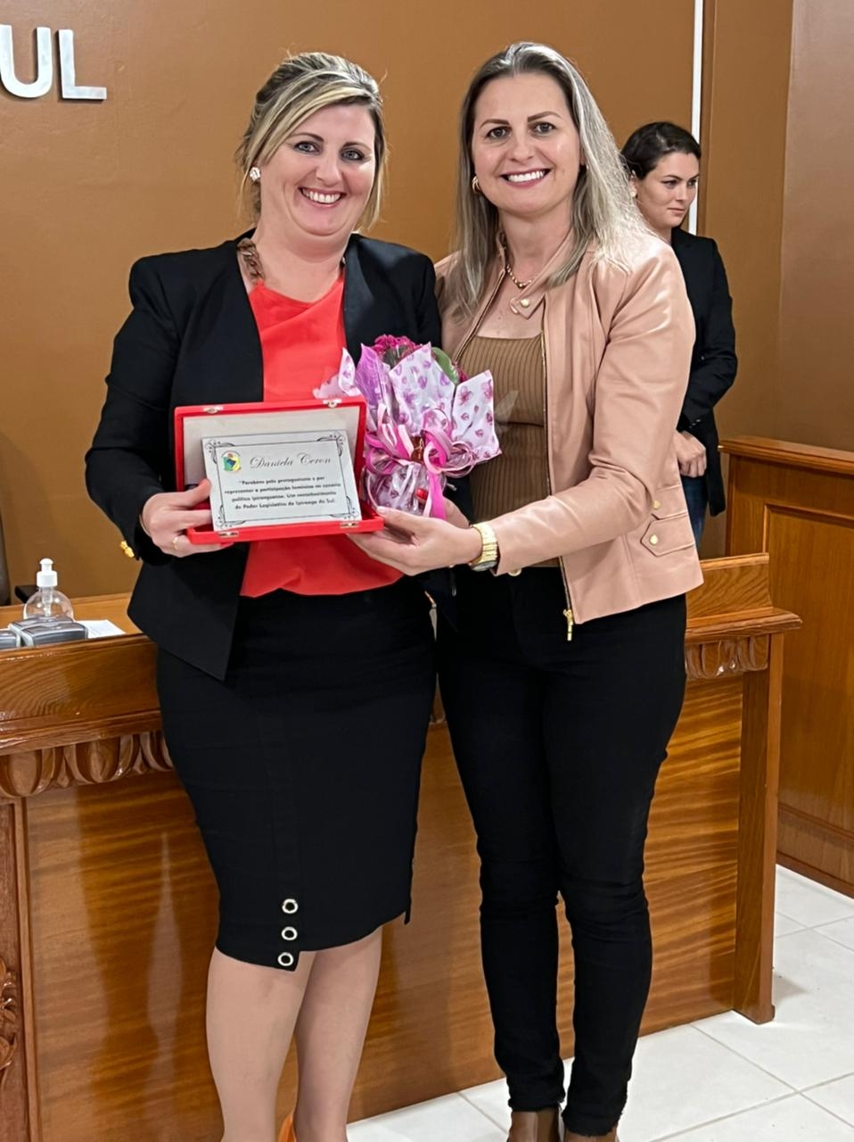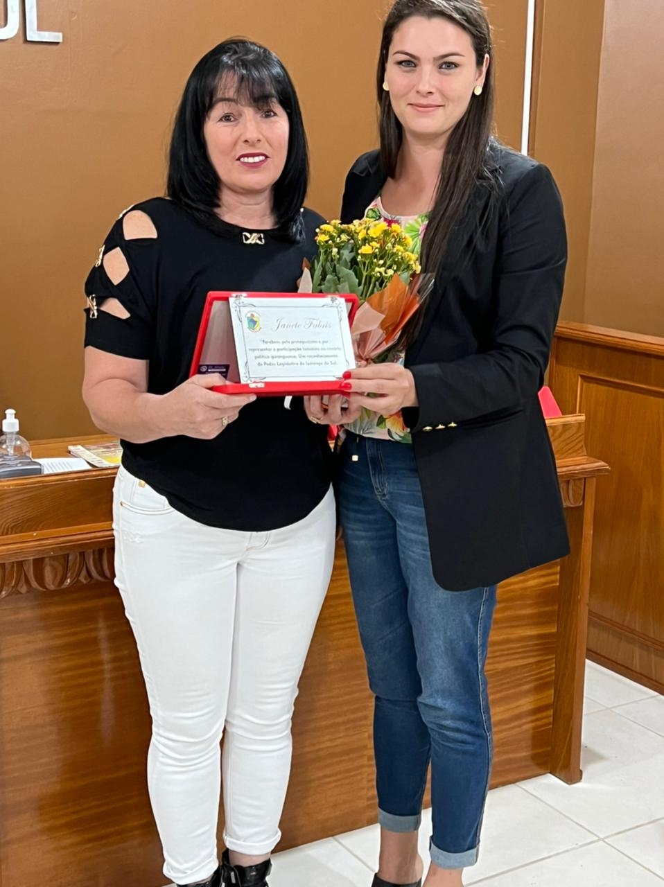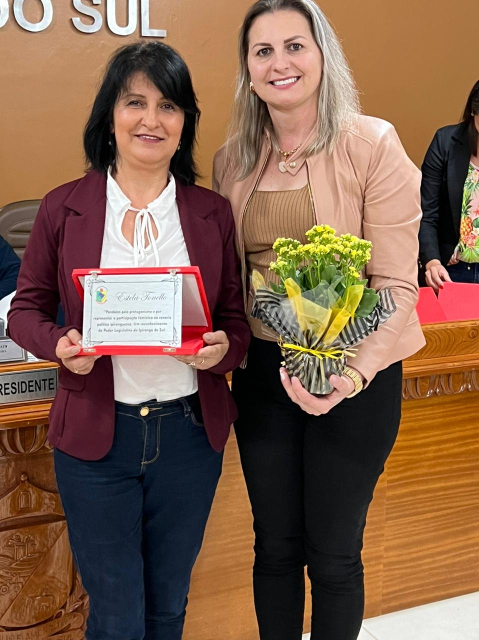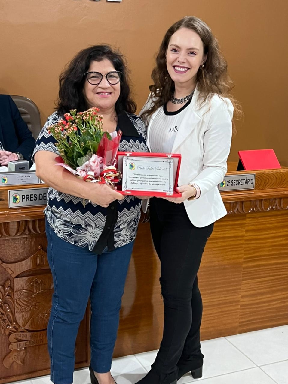 Também foram reconhecidas Danubia Desordi, ex-assessora jurídica (que não pode estar presente), Vanilda dos Santos, responsável pela organização e limpeza da Câmara (que também não pode estar presente) e Afani Baruffi, que está como assessora de imprensa e jornalismo da Casa.
