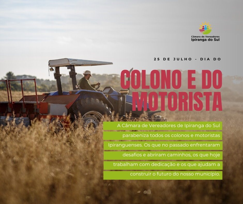 Neste dia 25 de julho, a Câmara de Vereadores de Ipiranga do Sul presta homenagem